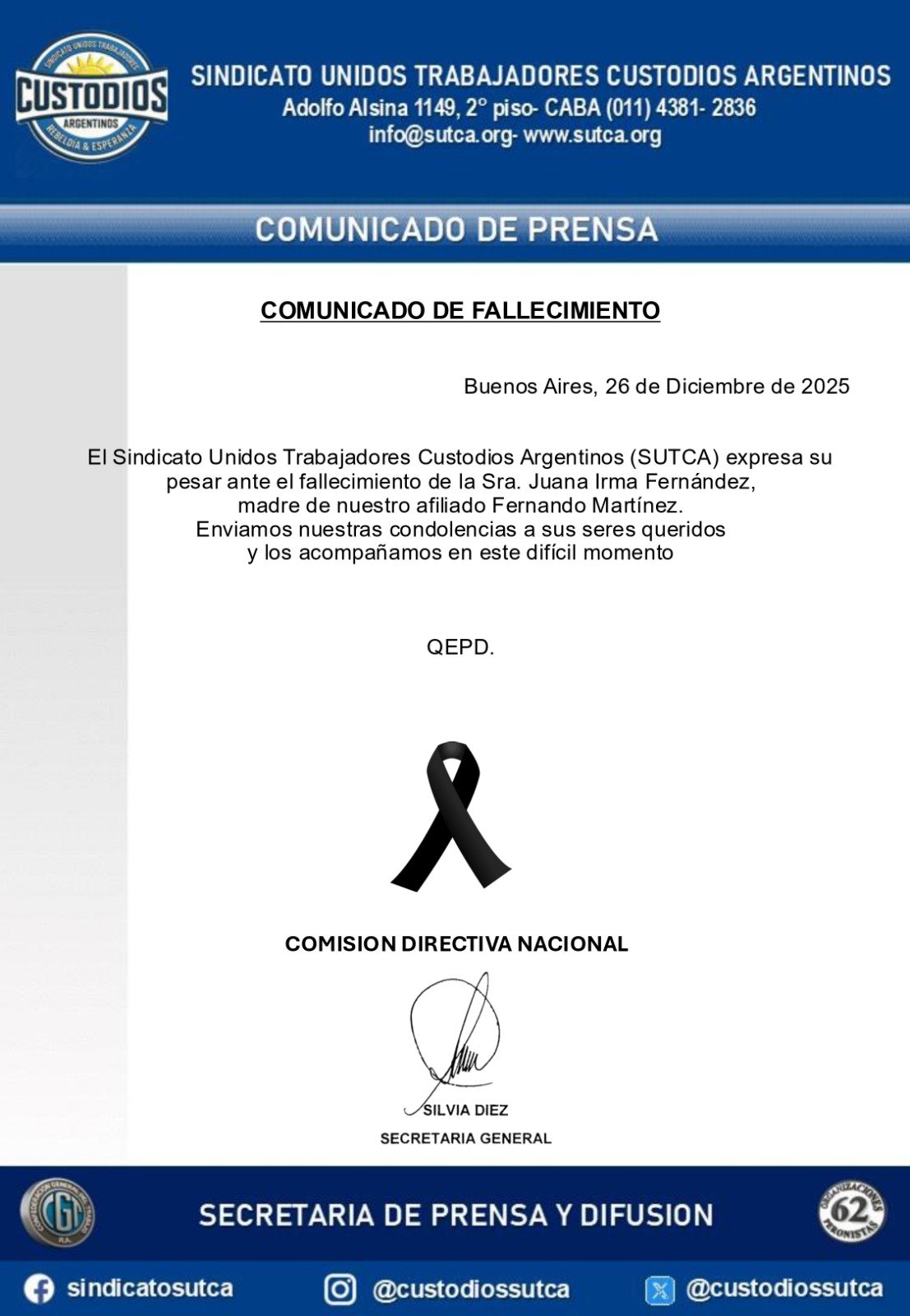 Comunicado de Fallecimiento