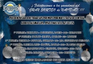 🎉 Gran Sorteo de Fin de Año 🎉Anotate y participá siguiendo las redes sociales de nuestro sindicato en Facebook e Instagram.¡No te pierdas esta oportunidad! ¿Cómo participás? ¡Es muy fácil!1️⃣ Comentá esta publicación.2️⃣ Sumá el nombre de la empresa en la que trabajás.3️⃣ Agregá los últimos 3 números de tu DNI. ¡Y listo! 🙌 📅 Vigencia para anotarse:Desde el lunes 15 de diciembre hasta el domingo 21 inclusive. 🎁 Premios sorpresa. ⚠️ Muy importante:Para hacerte acreedor del premio será obligatorio presentar último recibo de sueldo y DNI, sin excepción.